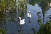 SCHWÄNE MIT SONNENUNTERGANG